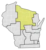 Ashland, Florence, Forest, Langlade, Lincoln, Iron, Marathon, Oneida, Price, Shawano, Taylor, Vilas, & Wood counties