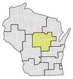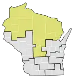 Adams, Ashland, Barron, Bayfield, Burnett, Chippewa, Douglas, Dunn, Juneau, Marathon, Marquette, Oconto, Polk, Portage, Shawano, & Wood counties (& Langlade, Lincoln, Marinette, Price, & Taylor counties created from this territory during the 1870s)