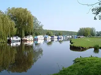 The River Wissey is a river in Norfolk, eastern England. It rises near Bradenham, and flows for nearly 31 miles (50 km) to join the River Great Ouse at Fordham. The lower 11.2 miles (18.0 km) are navigable. The upper reaches are notable for a number of buildings of historic interest, which are close to the banks. The river passes through the parkland of the Arts and Crafts Pickenham Hall, and further downstream, flows through the Army's Stanford Training Area (STANTA), which was created in 1942 by evacuating six villages. The water provided power for at least two mills, at Hilborough and Northwold. At Whittington, the river becomes navigable, and is surrounded by fenland. A number of pumping stations pump water from drainage ditches into the higher river channel.