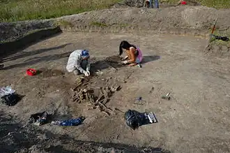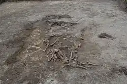 The mass grave discovered during the second exhumation in Wola Ostrowiecka (in August 2011 by Polish anthropologist Dr Leon Popek) [6]