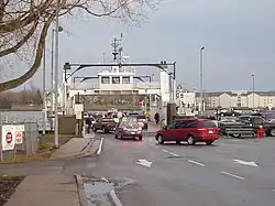 Wolfe Island can be accessed by ferry from Canada and the United States. The ferry from Kingston (Wolfe Islander III) is operated by the Ministry of Transportation (MTO) and is free of charge. This ferry operates from two locations: the Summer Dock located in Marysville and the Winter Dock located at Dawson Point. This route includes an underwater air bubbler system that stretches to the Barrack Street Dock in Kingston, Ontario, whose purpose is to prevent ice buildup along the ferry's route in winter.[6] This ferry service is currently being examined in an ongoing transportation study.[6] The seasonal Horne's Ferry (May to October) toll ferry[7] to Cape Vincent, New York, first licensed in 1802, is still operated by the descendants of the first licence-holder and is one of the rare Canada-US international border crossings to be privately operated (the others are the Windsor-Detroit's Ambassador Bridge and Sombra–Marine City (Bluewater) Ferry).