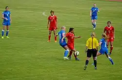 The number of clubs competing in the First League varied from season to season, and dropped from ten in the 2012–13 season to eight in the 2013–14 season.[10] The last standing clubs are relegated to the lower Second League.[11] The number of clubs competing in the First League increased from 10 to 12 in the 2019–20 First League season.