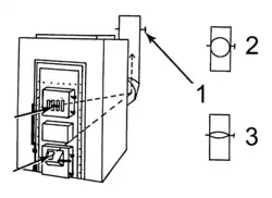 A damper in a stove chimney flue (1) controls air supply by being set open (2) or closed (3).
