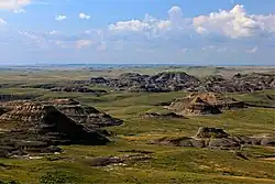 Wood Mountain Hills[1] are a hilly plateau in the Canadian province of Saskatchewan. The hills are located in the southern part of the province and are part of the Missouri Coteau, which is part of the Laurentian Divide between the watersheds of the Hudson Bay drainage basin of the Arctic Ocean and the Gulf of Mexico of the Atlantic Ocean.[2] The hills are in a semi-arid region known as Palliser's Triangle in the Great Plains ecoregion of North America.