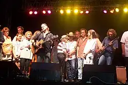Jimmy LaFave once again closed out the Saturday night line-up, ending with Guthrie's now-traditional "This Land is Your Land" and stating "see you next year for Woody's 100th birthday".[61] The two-hour-long Sunday afternoon "Hoot for Huntington's", under the direction of Terry "Buffalo" Ware and the WoodyFest House Band, squeezed in 23 musicians each performing one song – the traditional last song being Bob Childers' "Woody's Road".[61]