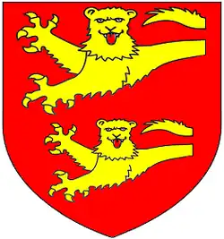 Arms of Hatch: Gules, two demi-lions passant guardant in pale or[7]