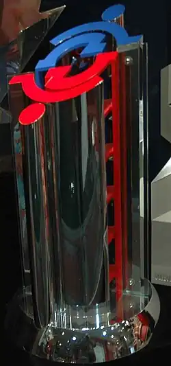 In 2004, Canadian American architect Frank Gehry designed a new trophy for the tournament. It is made from a composite alloy of copper and nickel as well as solid cast urethane plastic.[15] The trophy was criticized by the sports community, including the Toronto Sun's headline "What is that?"[16]