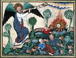 Wormwood strikes the earth (Douce Apocalypse, late 13th century)