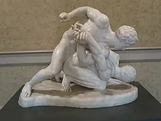 The Wrestlers (also known as The Two Wrestlers, The Uffizi Wrestlers or The Pancrastinae) is a Roman marble sculpture after a lost Greek original of the third century BCE. It is now in the Uffizi collection in Florence, Italy.