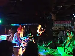 Wye Oak is an American indie rock duo from Baltimore composed of Andy Stack (drums, keyboards, backup vocals) and Jenn Wasner (vocals, guitars and bass).[1] Their sound has been described as "earnest folk-influenced indie rock with touches of noise and dream pop"[2] as well as indie folk.[3] Wasner sings lead vocals and plays electric or acoustic guitar, while Stack plays both drums and keyboards, playing the drums with his feet and right hand, and the bass line with his left hand.[4][5]