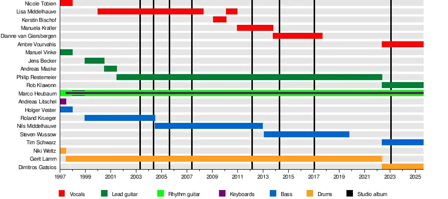 • Marco Heubaum – rhythm guitar (1994–present), keyboards (1997–present), vocals (1994–2001)