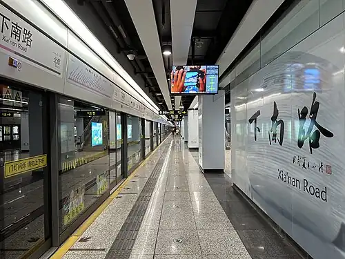 Xia'nan Road (Chinese: 下南路; pinyin: Xiànán Lù) is a station on Line 13 of the Shanghai Metro,[1] part of phase two of the line. Located at Chengshan Road and Jinxiu Road in the city's Pudong New Area, the station opened with the rest of phases two and three of Line 13 on 30 December 2018.[2]