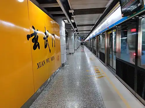 Xuanwumen station (simplified Chinese: 玄武门站; traditional Chinese: 玄武門站; pinyin: Xuánwǔmén Zhàn) is a station of Line 1 of the Nanjing Metro.[1][2] It started operations on 3 September 2005[3] as part of the line's Phase I from Maigaoqiao to Andemen.[a]