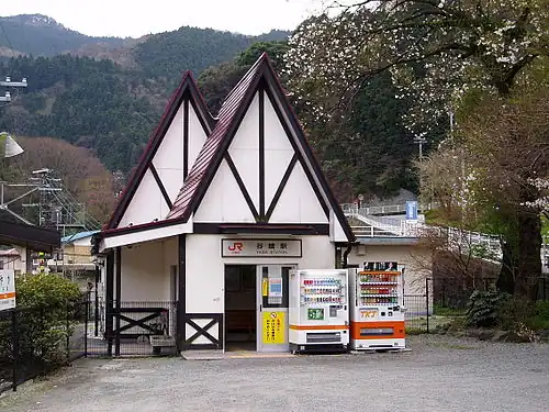 Yaga Station (谷峨駅, Yaga-eki) is a passenger railway station located in the southern part of the town of Yamakita, Kanagawa, Japan, operated by Central Japan Railway Company (JR Central). Initially primarily a freight station, used to transport firewood and charcoal from the Tanzawa Mountains, Yaga Station now serves only passenger traffic to nearby Lake Tanzawa and the Nakagawa onsen resorts.