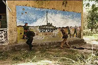 ![]() Clockwise from top: Northern Yemeni soldiers next to an abandoned bus with Ali Abdullah Saleh's portrait; Southern separatist soldiers taking cover behind a T-55 tank; Northern forces fighting in Aden city; Northern forces' BM-21 Grad multiple rocket launcher shelling separatist positions; Northern soldiers in a technical. | |||||||