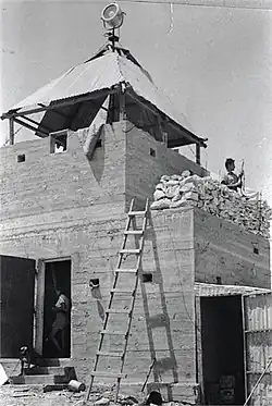 In 1933, 250 agricultural land plots were offered for sale. The buyers were Jews from Mandatory Palestine as well as families from Bahrain, Germany, Netherlands, Greece, Lebanon, Lithuania, Iraq, and Poland. The first families arrived on 2 December 1935 and populated 100 of the 250 land plots; they started fencing their plots and building permanent structures. The rest of the land was still held by Beduin sharecroppers from Qira, who refused to leave.[5][6] Yokneam was unique because land was privately owned by the residents, who later transferred the land to the Jewish National Fund.[7]