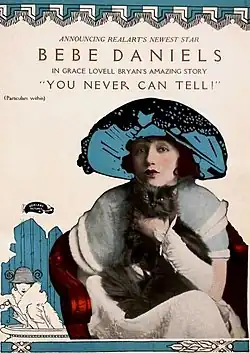 You Never Can Tell is a 1920 American romantic comedy film produced by the Realart company, an affiliate of Paramount Pictures, and distributed by Realart. Chester M. Franklin directed and Bebe Daniels starred in the film. The film is based on several short stories You Never Can Tell and Class by Grace Lovell Bryan. A surviving print of the film is housed in the Library of Congress.[1][2][3][4]