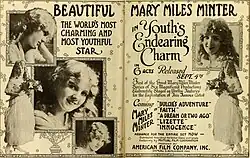 Youth's Endearing Charm (also known as Youth's Melting Pot) is a 1916 American silent drama film directed by William C. Dowlan. The film stars Mary Miles Minter, Wallace McDonald, and Harry von Meter. The script for the film was adapted by J. Edward Hungerford from a novel of the same name written by Maibelle Heikes Justice.[1] This was Minter's first film with Mutual Film, having previously been with Metro Pictures. A print is preserved at the Library of Congress.[2]