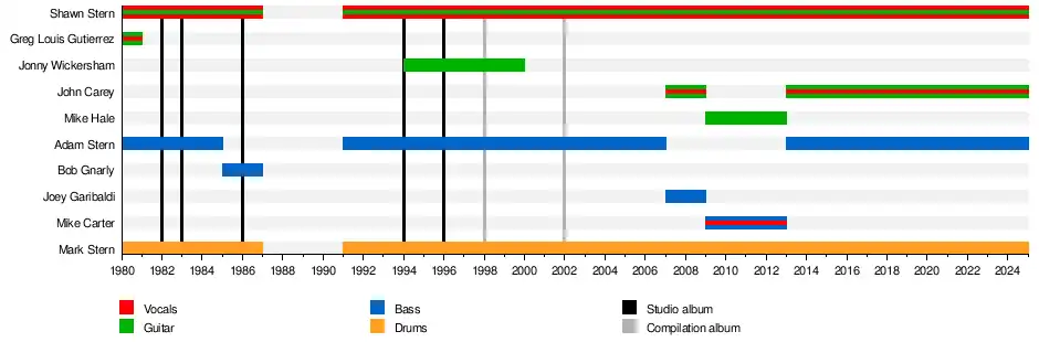 The Stern family, consisting of older brothers Shawn (guitar and vocals) and Mark (drums) and younger brother Adam (who later played bass), moved from Toronto to Los Angeles in 1970, because their father worked in the film industry.[5] As teenagers, Shawn and Mark were surfers who skipped school to smoke marijuana and attend rock concerts. At 16 and 17, they played in their first band, called Mess, which played Led Zeppelin and Jimi Hendrix covers at parties. A year later in 1978, they discovered punk rock and formed a quirky prog rock/new wave band called The Extremes, releasing a four-song EP on which Shawn sang with a fake English accent.[5]