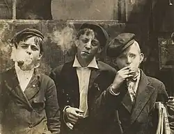 One popular trend among adolescent cigarette smokers is the recent rise of e-cigarettes. This phenomenon is also known as vaping but has many other names as well.[40] In 2020, it was estimated that approximately 1.3 million children in the United States smoke.[41] For the first time in 2014, e-cigarette use was higher among adolescents than smoking traditional cigarettes.[42][4] The most common reasons for using e-cigarettes was to experiment, followed by others reporting e-cigarettes taste good and e-cigarettes to aid in quitting smoking conventional cigarettes.[4] Less students associate e-cigarette with serious risk in comparison to smoking conventional cigarettes.[4] In a nationwide examination as part of the National Youth Tobacco Survey 2011 and 2012 cohort, e-cigarette use was associated with a greater likelihood of having a history or currently being an active cigarette smoker.[43] For individuals that were current smokers, e-cigarette use was associated with higher odds of planning to quit smoking.[43] Among cigarette experimenters, defined in this particular study as having less than one puff of a cigarette, e-cigarette use was associated with lower odds of remaining abstinent from conventional cigarettes.[43] A study of nearly 2,000 high school students found that students who used both e-cigarettes and regular cigarettes had a significantly greater amount of risk factors associated with smoking.[44] In comparison to students who did not smoke, students who used e-cigarettes only or used both e-cigarettes and regular cigarettes more often viewed e-cigarettes as healthier than regular cigarettes.[44] Additionally, there is little disapproval for the use of e-cigarettes among adolescents.[4] The role of e-cigarettes as being primarily a risk or protective factor for traditional cigarette smoking is debatable, however adolescents are very susceptible to the lure that accompanies e-cigarettes. E-cigarettes companies design flavors that make their products seem less harmful than they appear to be. They also associate these products with everyday food items. In 2019, Juul, another e-cigarette company, stopped selling their best-selling flavor pods amid the Trump administration decision on the sale of flavored e-cigarettes.[45]