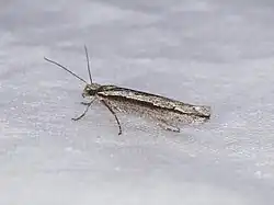 3. ^ "360054.00 โ€“ 2381 โ€“ Ypsolopha flavistrigella โ€“ (Busck, 1906)". North American Moth Photographers Group. Mississippi State University. Retrieved November 17, 2020.
