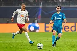 His achievements attracted the interest of foreign and domestic clubs, and on 3 July 2013, he signed a contract with the newly promoted 3. Liga German side RB Leipzig.[4][6] He made his club debut on 19 July 2013 in a 1–0 win at Hallescher FC,[7] and scored his first goals in a 2–0 home win over Rot-Weiss Essen on 24 August,[8] and netted two more in the final game on 10 May 2014 to win 3–1 at Stuttgarter Kickers.[9] He finished the 2013–14 season with 10 goals in 36 appearances as his team were promoted as runners-up.[10]