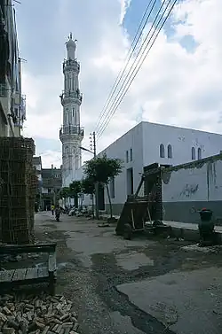 The mosque was built in 1587 by Zaghloul, a Mamluk who was owned by a prince named Sayyid Harun.[4] Like many mosques at the time, it was a center of science, religion, and national movements, which made it influence the events of the city during this period.[5] The mosque was catalyst for popular resistance against the French campaign in Egypt in 1801,[6] and also had an important role in the battle of Rashid during the Alexandria expedition of 1807.[7] As the British army invaded Rosetta from Alexandria, the 700-man garrison in Rosetta awaited a signal to attack the incoming British soldiers,[8] when the muezzin (the caller to prayer), under the orders of the governor of Rosetta Ali Bey Al-Selaniki and Sheikh Hassan Crere, chanted from the minaret of the mosque: 'Allah Akbar! (God is great) For jihad!',[9] which alerted the garrison that now was the time to strike. Rashid's garrison fire broke out from all over the city, and the battle ended with the British defeated.[10]