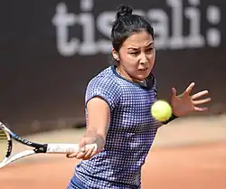 Zarina Diyas (Kazakh: Зари́на Ди́ас, romanized: Zarina Dīas) was born on 18 October 1993 in Almaty.[6] Her mother is Aida Aulbekova, and she has a sister named Alissa. During her childhood, Diyas spent many years in the Czech Republic, having moved there with her mother and sister when she was five years old.[7] Her mother introduced her to tennis at age six.[8] Around 2010, she played as a member of a tennis club in Prague.[9] She had a chance to acquire Czech citizenship but decided against it to keep on playing for Kazakhstan.[9] She lived in the Czech Republic until she was 12 years old, before moving to Guangzhou, China for much of her tennis training.[7] She later started studying psychology at university, remotely.[6]