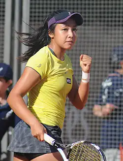 In Asia, she got to the second round at the Wuhan Open and the China Open, losing to Angelique Kerber in both second-round matches.[30][16] After that, Diyas reached her first WTA Tour final at the Japan Women's Open where she lost to Samantha Stosur in straight sets.[31] All of these helped her rise into the top 50. She finished year as world No. 34.[17]