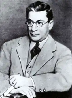 Grzhebin was closely associated with Maxim Gorky.[17] He started working with Gorky in 1905, publishing the novels given to him by the author. He created the Grzhebin Publishing company in 1919, until 1921, when he was given permission to emigrate.[8] He travelled in the same train as Gorky following the latter's unsuccessful bid to save the life of Nikolay Gumilev, shot for his monarchist views. He settled in Berlin at the end of 1921, where he published books under contract to the Soviet government, despite allegations of cheating.[18] In Berlin, he published more than 220 books. However, when a series called Letopis revoluistii included works by Fyodor Dan, Julius Martov, Viktor Chernov and Nikolai Sukhanov, the Bolsehviks were unhappy as they regards these fellow socialists as counter-revolutionaries.[19] Lenin prohibited the import of Russian books published abroad thus signing the professional death of Grzhebin. A trial ensued in which Grzhebin's right to be paid for the books that he published according to the contract signed with the Soviet government was recognised.[20][21] [22] However the government offered to pay him in unconvertible roubles that were of no use abroad.