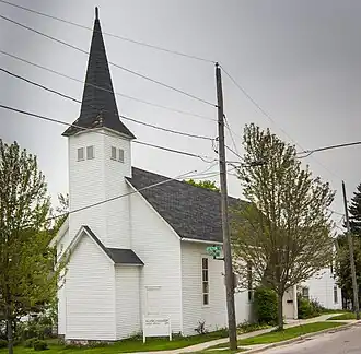 The Zion Evangelical Lutheran Church was erected 1892 for the Zion Evangelical Church congregation. The congregation used the church until 1949,[2] when they moved to a new church structure located on US Highway 131.[3] In 1951, the Petoskey Mennonite Church purchased the building; the congregation later changed its name to the Hilltop Mennonite Fellowship. The Mennonite congregation used the building until 2015, when the congregation closed.[4] The building was then purchased by Colleen and Michael Pattullo and now operates as the non-profit Chapel of Our Guardian Angels.[5] The Unitarian Universalist Congregation of Petoskey rented space there for its meetings from 2016 to 2020.[6]