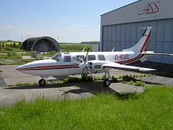 A Piper Aerostar general aviation aircraft at Zweibrücken Airport