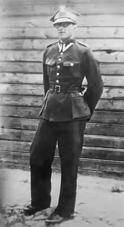 Following the start of the Second World War, he voluntarily joined his regiment, stationed in Bielsk Podlaski. After the Soviet invasion of Poland, he was taken prisoner by Soviet forces. He was taken to the POW Camp for Polish Officers in the Optina Monastery in Kozelsk, Russia.[7]